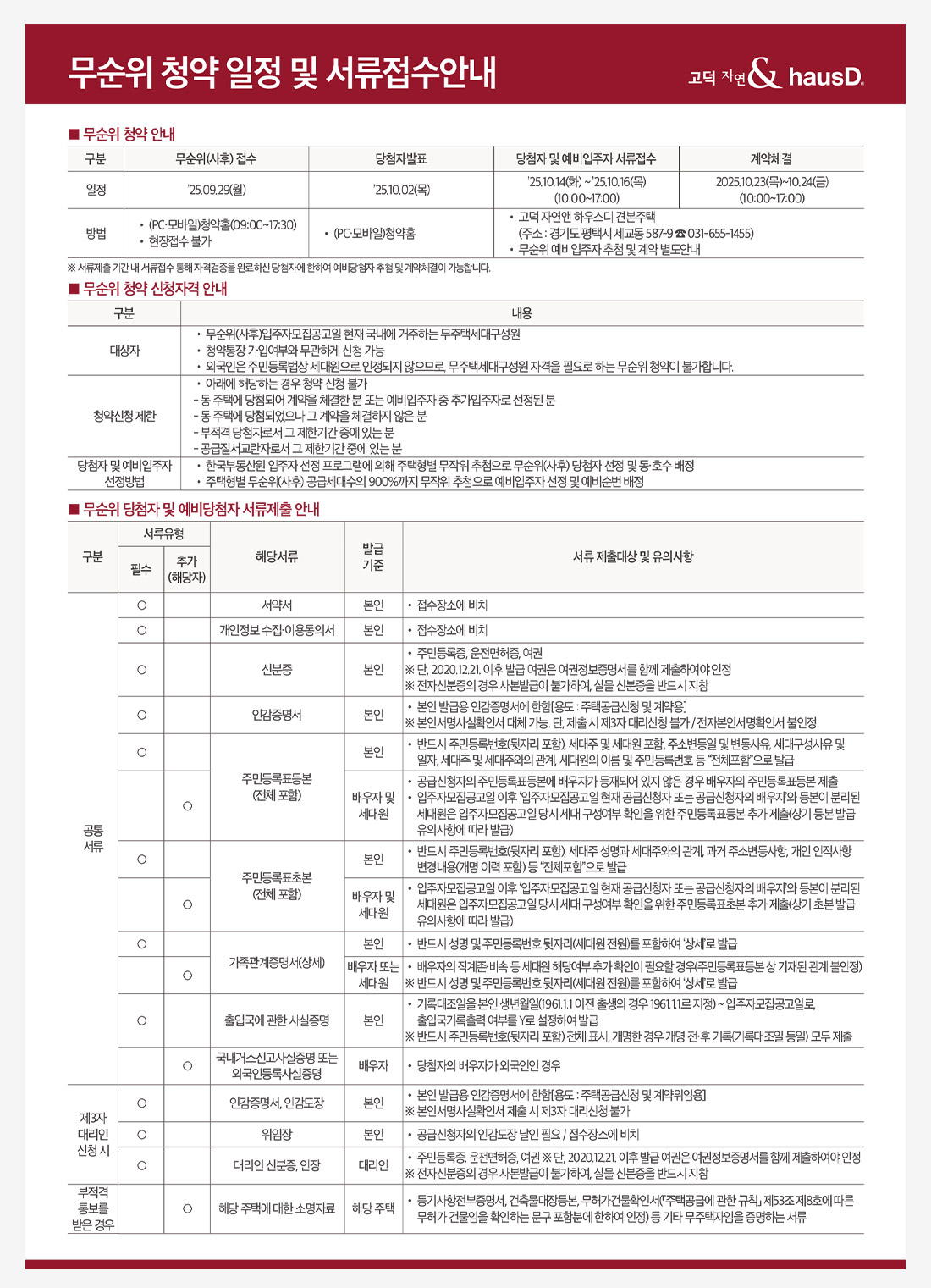 무순위 신청자격 및 서류안내